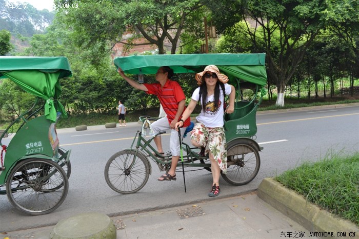 来成都这三天,给我们的印象是雾大,天闷热,昨天去都江堰回来的路上,车上温度计显示是39度,今天雾气依旧,我们决定峨眉山就不去了,它和乐山大佛距离很近,只有几十里的气候山色估计与乐山也是雷同,马上就要进入高原了,还是保存些体力是有必要的,这样我们今天在乐山下来也是闷热的很不舒服,从景区北门停车场,来回到景区门口都是做的人力车。