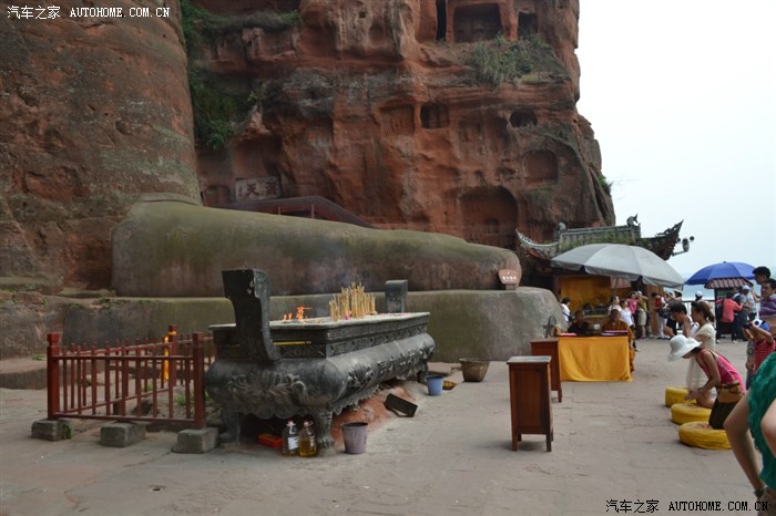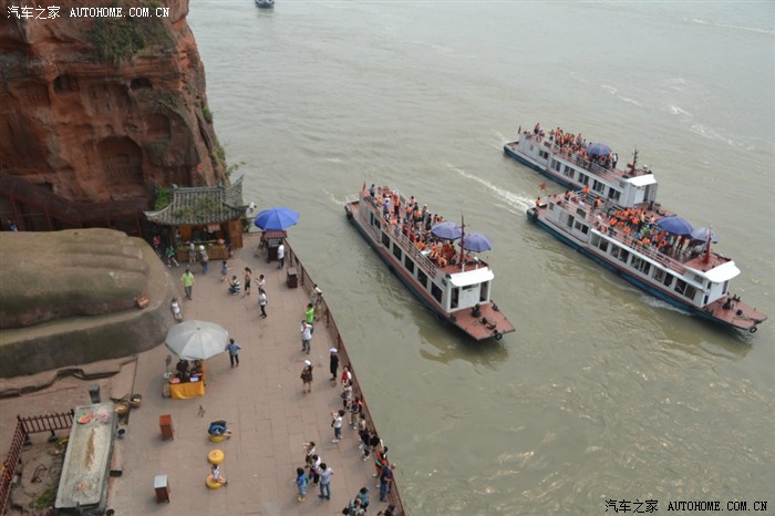 保养完汽车后,按计划直接导航上高速去乐山景区看大佛,4s店距离乐山大佛景区约140公里,到达乐山市已经是中午,吃过路边小吃抓紧到景区,这里上山门票95元一张,含5元保险,如果坐船在岷江观看,船票70元一人,我们选择了登山,并花40元请了一位导游,这里导游也是漫天要价,有两位主动上来搭话的,一个要80元,另一位要60元,我们还价给了40元成交。其实全国旅游都差不多少,大家到各地景点请导游要注意,据内部人士透露,导游费半天之内的一般都是40元的标准。