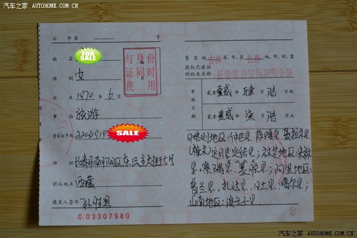 到你的户口所在辖区公安分局的户籍科办理,办证时需携带户口本、身份证及身份证复印件一份、一寸标准照一张(公安部门留作备案)、单位介绍信(没有单位的到居住社区开介绍信)就可以了。不花钱,当天办理当时就可以取走。把你要去的需要边境证的地方填写到县一级(我们这里是咱们提供去的地点,工作人员给你填写到边境证上),听说有的地方有护照也行,但要看人家警察的心情,我们是边境通行证和护照都准备了,给你看个我们边境通行证的图片吧。