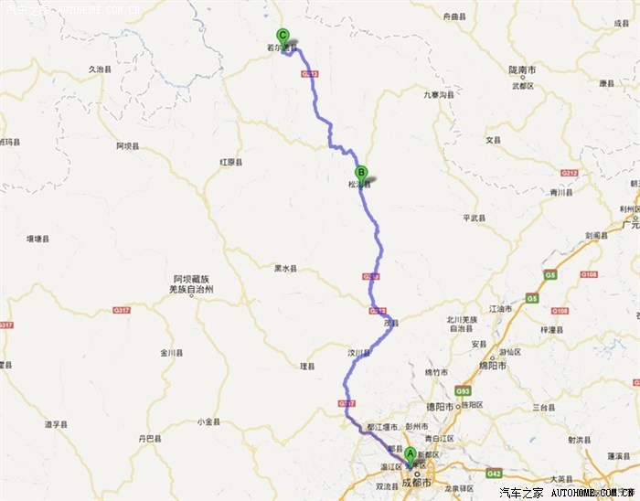出发地点:成都——松潘——若尔盖——松潘——成都