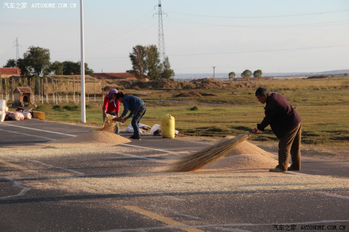 走在路上,看到了多年都看不到了农村收麦子在马路上晒麦子的景象。