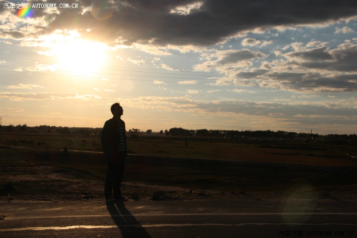 停车拍照,多美的夕阳啊,还能排除来彩虹
