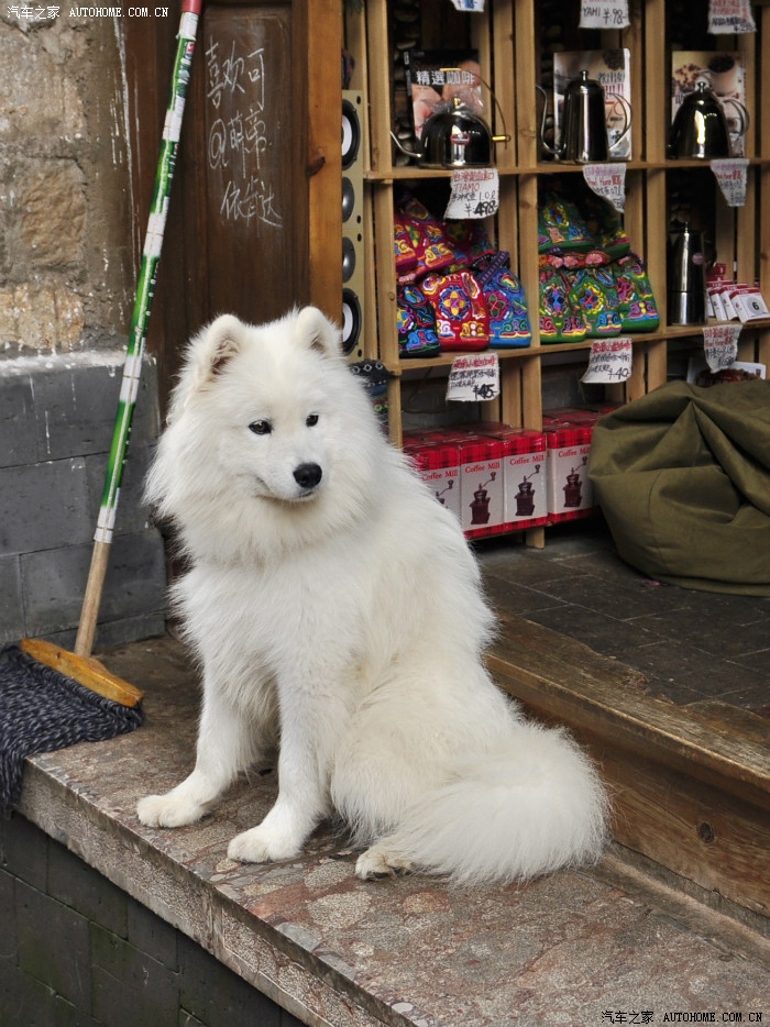 客栈老板家的阿拉斯加犬,养的很肥,很挑食。