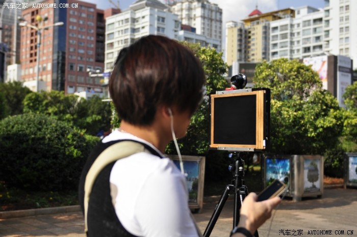 在广场上看见一个拍照的人,他那的器材很特别,第一次见,他说是小孔成像什么的,还是利用胶片的,我也不太懂,但我感觉是最原始的拍照原理了,而且曝光时间要3、4分钟,挺酷的。