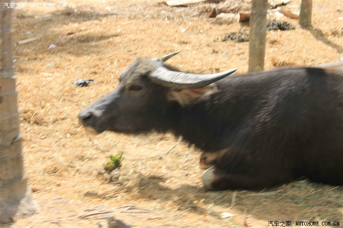 在路中间散步的水牛