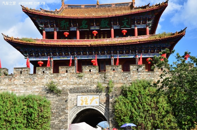 大理古城简称叶榆,又称紫城,其历史可追溯至唐天宝年间,南诏王阁逻凤筑的羊苴咩城(今城之西三塔附近),为其新都。现在的古城始建于明洪武十五年(公元1382年),方圆十二里,城墙高二丈五尺,厚二丈东西南北 各设一门,均有城楼,四角还有角楼。解放初,城墙均被拆毁。1982年,重修南城门,门头“大理”二字是集郭沫若书法而成