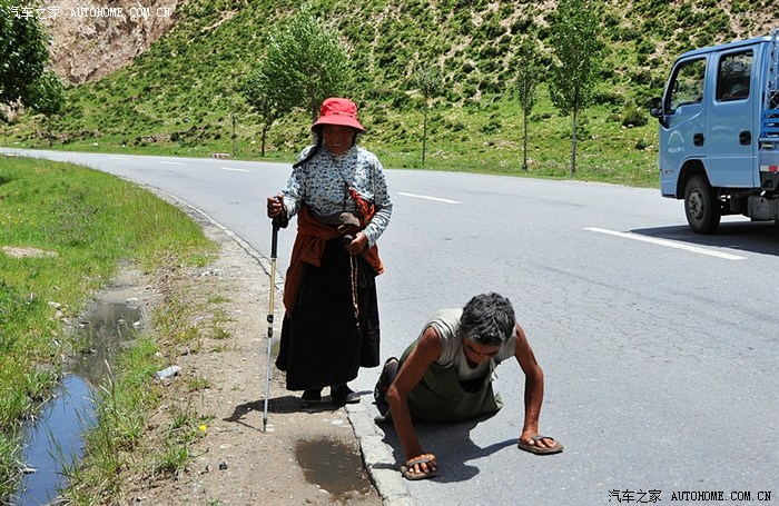 往拉萨途中,遇到一对老夫妇,虔诚地磕着等身长头。他们一路从四川的甘孜过来,风风雨雨,酸甜苦辣,同甘共苦,已经磕了7个月了,还有十五天,(我们开车只需1个小时)他们就能到达心目中的圣地:拉萨。看着老人额头上磕的伤疤,已经化脓,这是什么?信仰,信仰的力量。