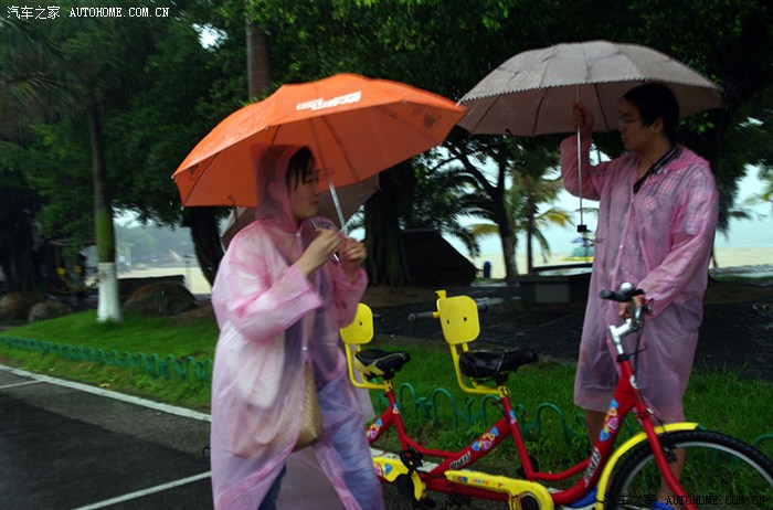 (骑行是快乐的,无论你是谁,只要你到了这里,骑上自行车,在海边环行,所有的烦恼随汗水和海风一起飘散,而淋着雨又是另一番风情)
