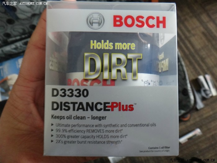 博世的高端机滤,同样的99.9%的过滤效果~而且明确的写着持续保持机油清洁~加长换油里程。貌似国内博世卖的产品和国外很不一样,难道是因为地域销售策略?从产品的包装到产地,的确很不一样。这个机滤是三个里面最贵的11块多~相比之下,沃尔玛同适用车型的机滤最便宜的也就3块多~这个续航里程我没查官网咋说的,估计也不会下来1W5英里的~毕竟是博士的高端货么。。。没注意看,貌似是德国制造的。不确定~很有分量倒是真的~
