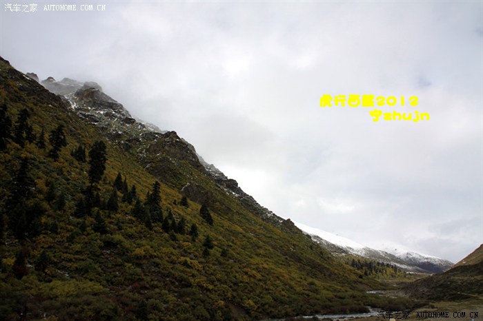 此照与第一张照片同一时刻拍得,当时下雪后人一下就癫狂了,也就不管什么冷不冷了,脱了衣服就让人帮我照下此景。当时行车电脑已显示为零下一度,我是很担心车被冻住的,但也没有办法了,到然乌再找负20吧。此前在那曲加过负20,因为当地人说必须加此油(8.94元一升)