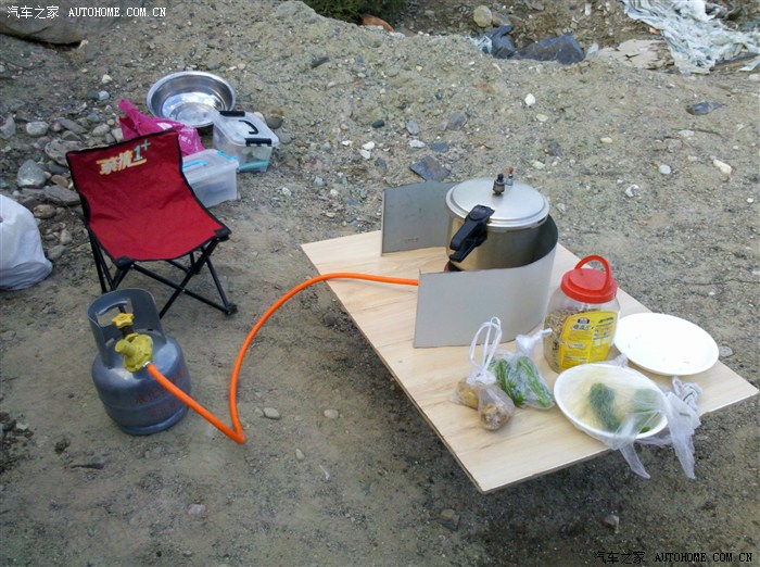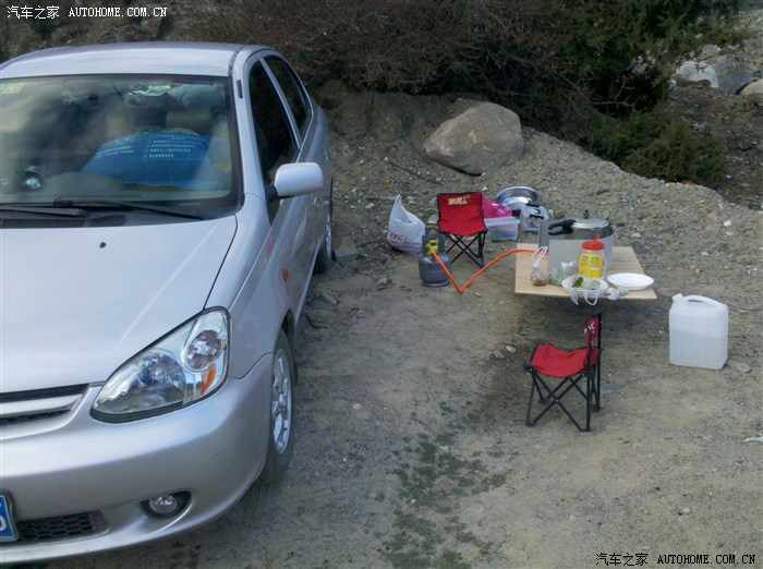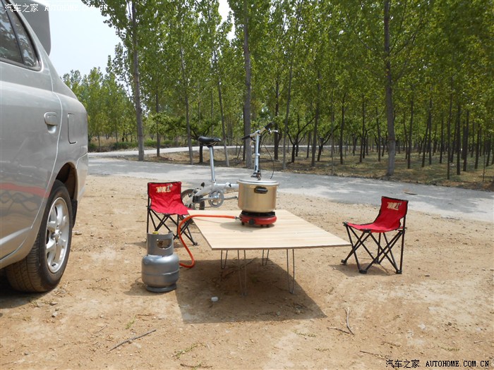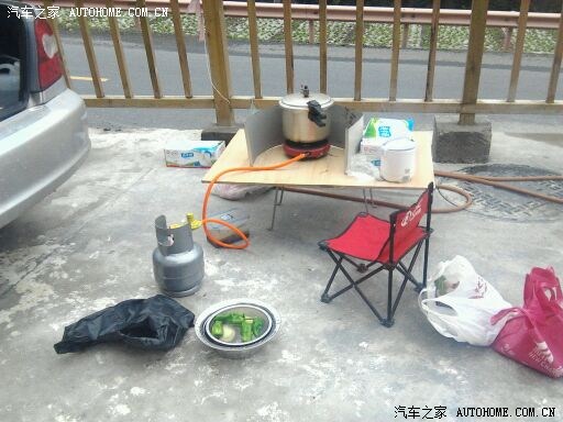 再配上小液化气罐,在车上吃,喝 ,住就都行了。为了生活更方便,又买了12V电饭煲,12V烧水杯