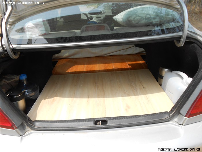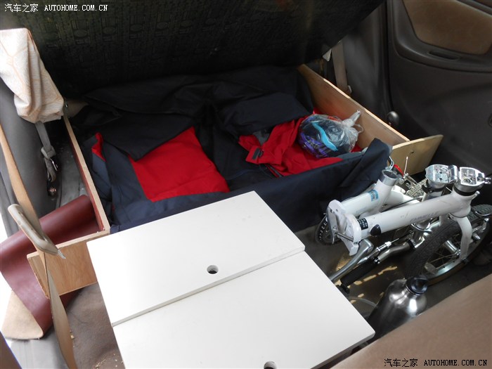 既然要去,那就要先做准备工作。因为是穷游,所以想在车里吃住,于是把车的后排座椅拆掉,下面用木框垫平,前面的木框放换洗的衣物,后面的木框放生活用品,两边盖上木板就形成了一个床。
