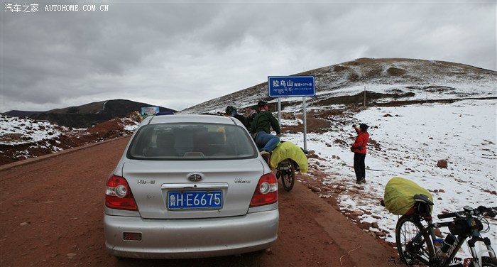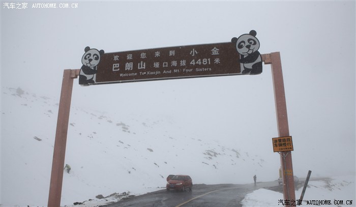 我们在映秀下高速不久,就是十几公里的烂路,在这段烂路上 ,堵了一会车,快到一个加油站时,路便好了起来,我们同行的越野车渐渐地加快了速度,我们慢慢的落到了后面,为了安全,我还是坚持慢慢走。走着走着,感觉慢慢地开始爬山了,盘山路湾一个接着一个往上走,走了好长一段时间,往下看已是深不见底了,再往上看,还是看不到顶,虽然我对自己的驾驶技术很有信心,但是第一次开那么高,多少还是有点心慌。走着走着,天开始飘着雪花,也开始刮起了风。快到12点了,我停下车,往电饭煲里加上米和水,插上电源继续往上走。风越刮越大,路上的积雪也越来越厚,能见度已不足10米,我也开得更慢了,看见路边的骑行者们,推着单车,一点一点的往上推,他们的步幅很小,也不是一开始看到的那样,好几个人在一起,他们的距离拉开了,只能看到一个人,两个人,低着头,推着车,一步一顿地往上推。看着他们顶风冒雪,艰难地推行,一种敬佩之情油然而起,忽然想到高尔基的一句话:让暴风雪(雨)来的更猛烈些吧。。。。。。。