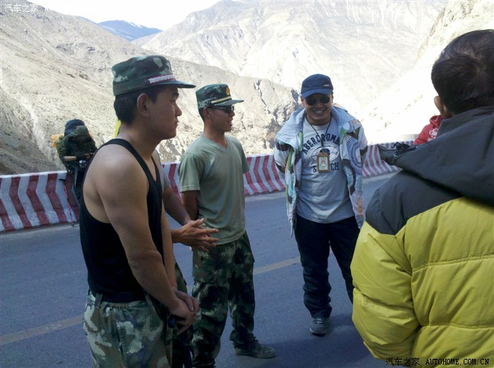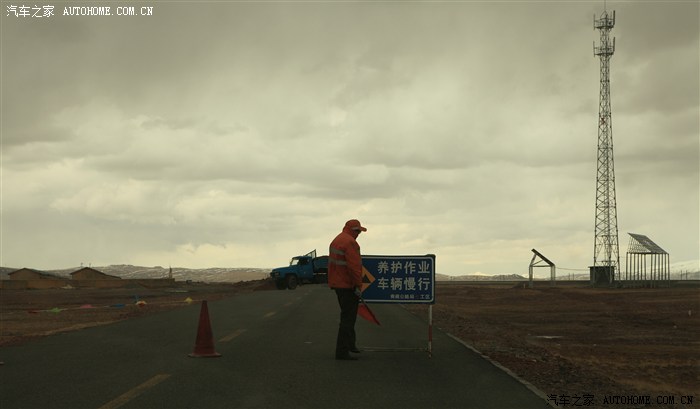 下来唐古拉山口,养路工人养护作业,在这堵了有10钟,下车看见我后面的那辆车,是一辆花冠,我们在映秀堵车时也在我的车后,是一位东北老大哥两口的车,相隔12天,好几千公里我们又遇上了。