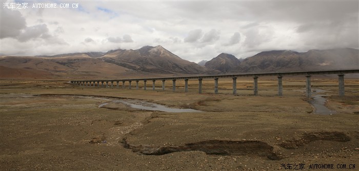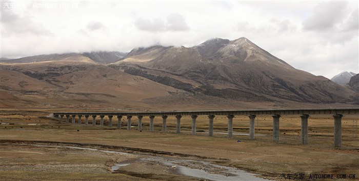 出来拉萨不多远,就和青藏铁路并行,青藏铁路,这条世界海拔最高、线路最长的高原铁路,被誉为“天路”。它东起青海西宁市,南至西藏拉萨 市,全长1956公里。以桥代路——青藏线上另一道风景。