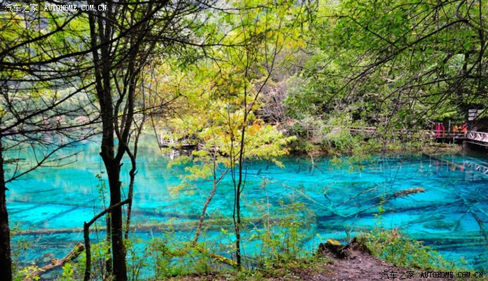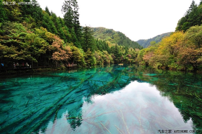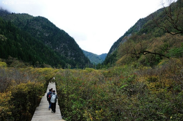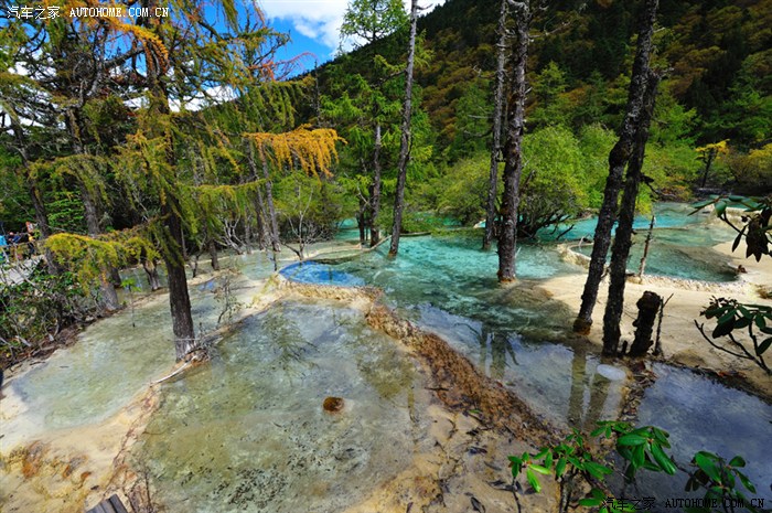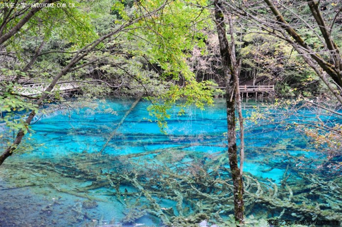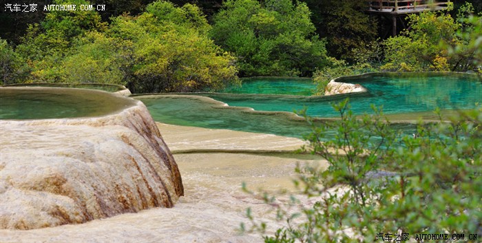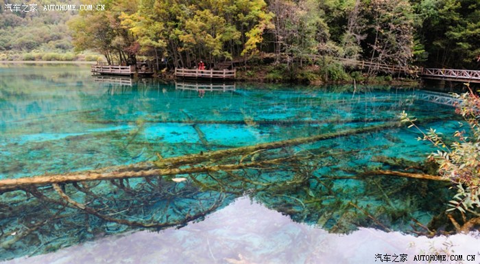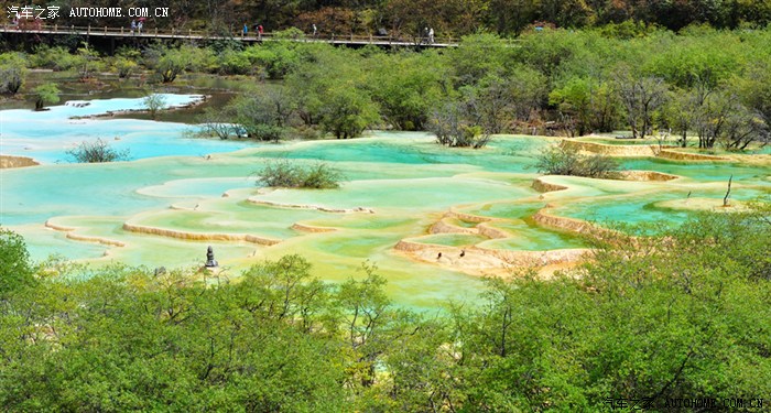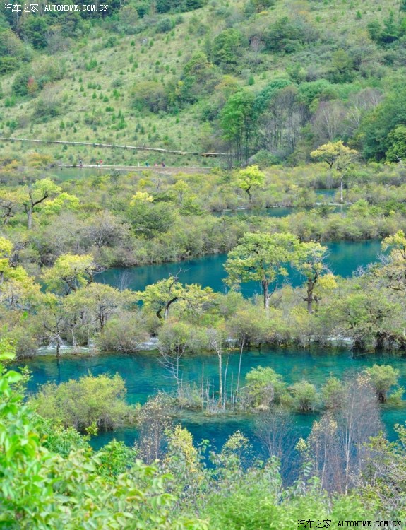 五彩池游完,坐着交通车又向下行,因为上下季节海因为丰水的原因,栈道被淹,并且这两个点的景色相对要逊色些,但是距离却是最长的,为了保存体力,我们才决定坐车