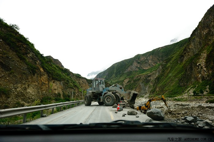 前方又有碎石堵路,要是还伴随堵车,就有点崩溃了,还好路上车不多