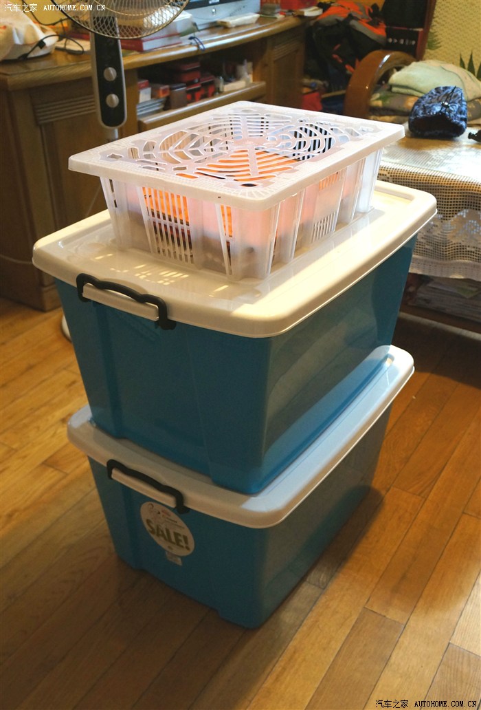 14、零星物品两个收纳箱基本就全装进去了,随时买些青菜放在小菜筐中。两个箱子花了些钱