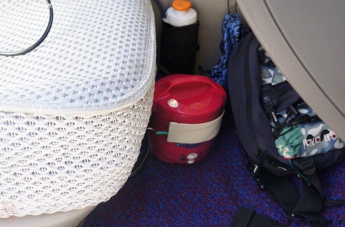 2、因为做饭要在行车中进行,我们就这样把它固定在副驾座位下。经过实践很成功只是坐在副驾的人一定要注意煮饭时排气孔冒出的蒸汽温度很高,我的手上不小心被烫起了疱。