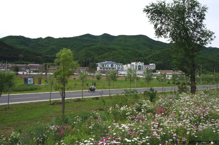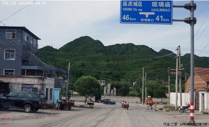 37、四海镇,中心广场的雕塑就是附近四个海子的标志,问过老乡,他们也不知这四海是哪四个水泡子。去珍珠泉经过的三岔道口,我们向延庆方向走。