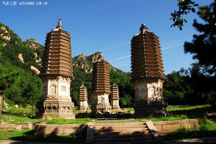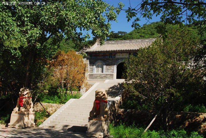 20、步行上山约两公里看到庙门。据介绍寺以奇松、清泉、古刹、古塔、山岳、林木等人文,自然景观而驰名。
