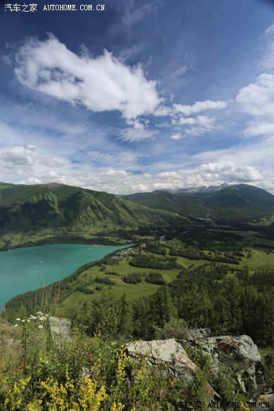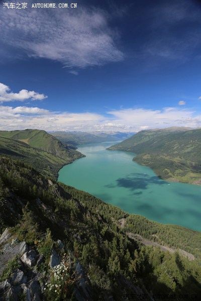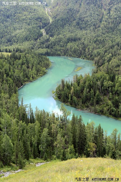 观鱼亭上鸟瞰喀纳斯湖: