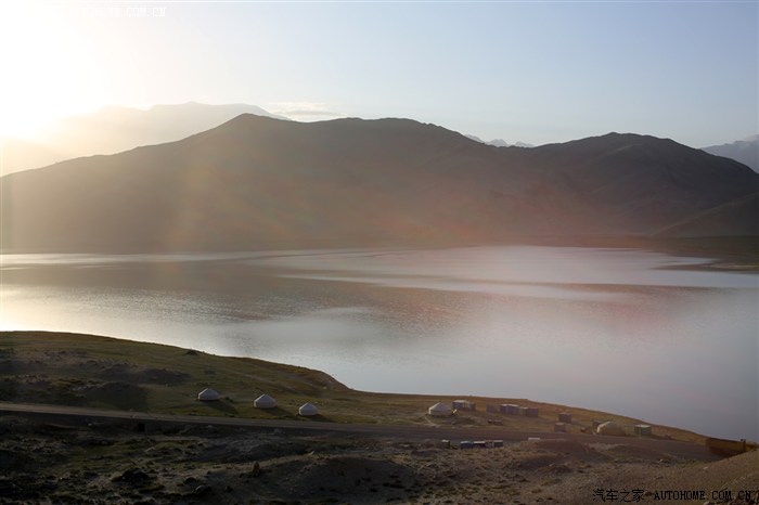 早上起床后拍的喀拉库勒湖日出景象: