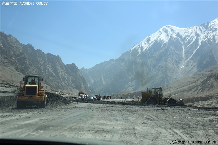 当然,除了美景,也有惊险的时候,路上遇雪山融水坑洼路面,被大货车压的中间拱起,两边低洼,且低洼处被黄水淹没,不知道多深,车子前行到一半就轮胎打滑动不了了,于是倒车,往后退了一段,然后猛踩油门,冲了过去,只听见底盘咣咣咣地几声响,冲过去了之后赶紧停车检查底盘,还好咱装了护板,没事儿,后边有两辆轿车也往那冲,前头的一辆也卡在了中间,祝这位哥们好运~