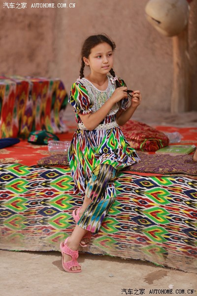 身着艾德莱斯绸的新疆小姑娘: