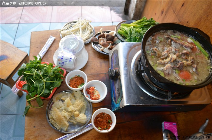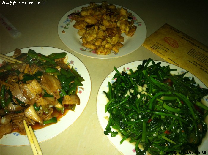 晚饭来,弄张合影先。右下是一个本地不知道什么的青菜,那个青菜和鸡肉都不错。老板送了煮蚕豆很好吃,吃多了涨得慌。