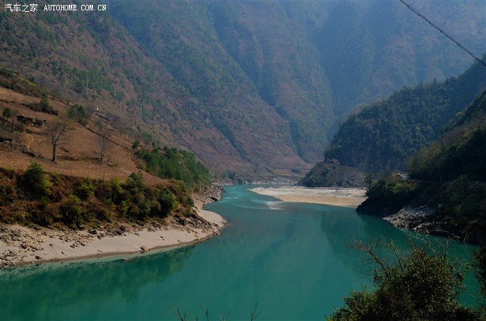 金沙江的水很凉,有些刺骨,一江水向下游远处的山间流去,颇有点桂林山水的味道。由于是下午3左右,时间不好,江水照出来不够蓝,是就上很透亮很蓝的,尤其是在路边向下看的时候,很美
