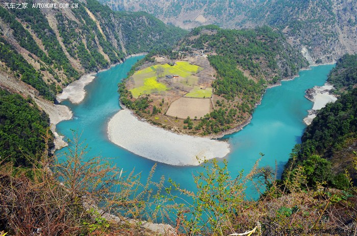 真正的金沙江第一弯景点就像个小公园,离水面太近不能拍出俯瞰的效果。山上有很多所谓“最佳拍摄点”,都是旅馆自己开的或者要花钱上去的,我们晚上还要赶到大理,而且最不屑的就是这种宰人之举,没有上去。景色反而不如之前水边的油菜花田。简单拍照两张走人,出发返回大理。