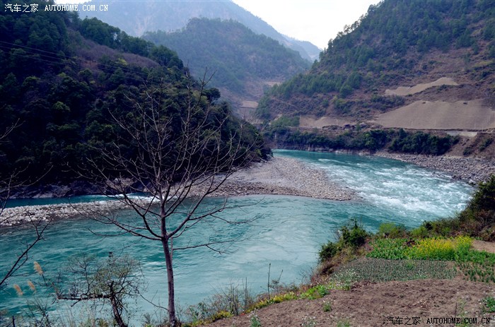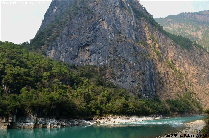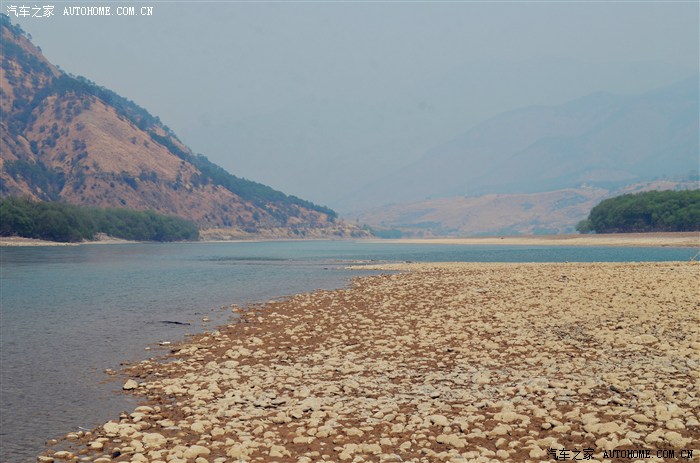 马上快到第一湾的时候见路边景色不错,停车,下到江边去玩玩,我们两个择路还真到了江边