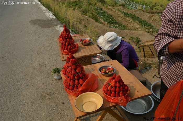 草莓与北京的奶油草莓不一样,6块一斤,非常新鲜,我们之前从没见过叶子是全新鲜绿色状态的草莓。这一堆大概十几块钱吧。有点酸,只是一点,水很多,咬一口,哎呀,不用买水喝啦!!!
