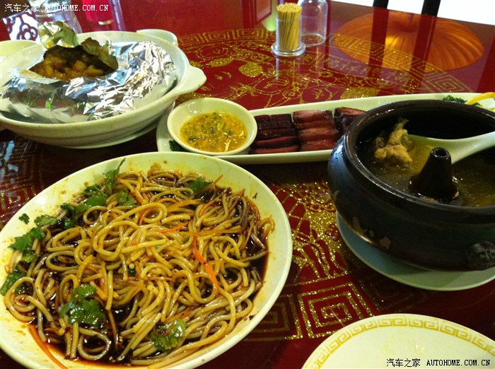 DAY2 的午餐,福照楼北大门店的汽锅鸡,右上是熏肉,很有云南特色。左下是凉鸡米线,左上锡纸里的是一个广受欢迎的土豆泥,锡纸外撒酒点火的,味道都不错哦~这是在云南吃的少有几顿正经饭之一。