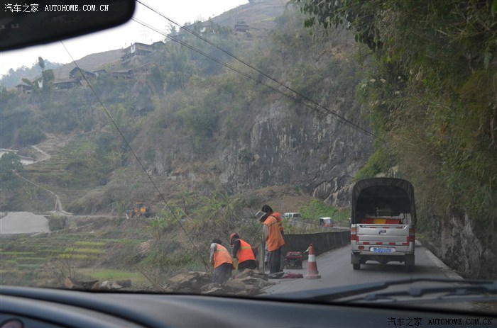 看看G214的路况,货车多,路面坑洼,无护栏这可是90度的弯啊。LD照相不容易,真的很颠,还好爱丽舍舒适性还不错,就是刹车吃不消啊。