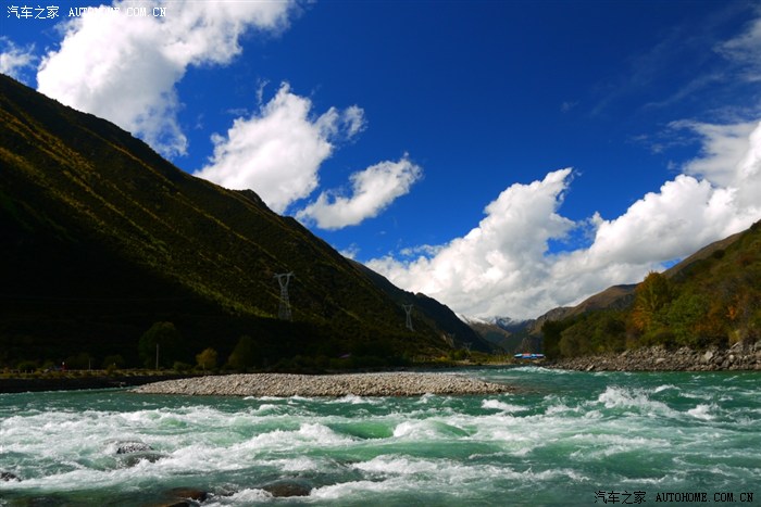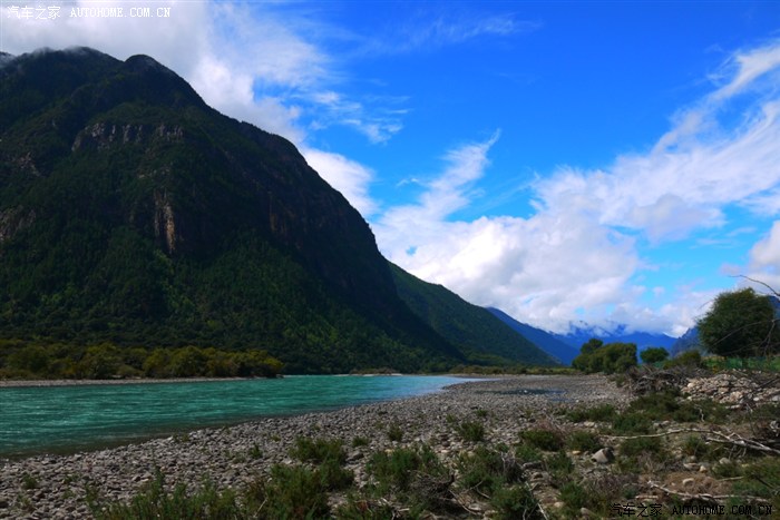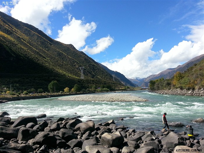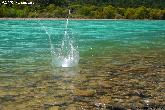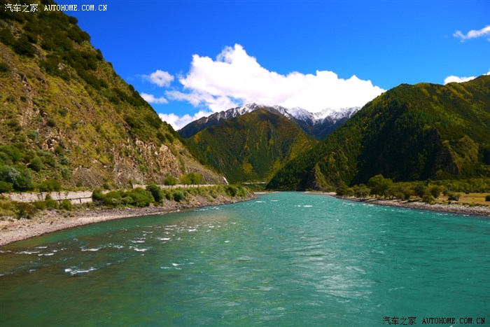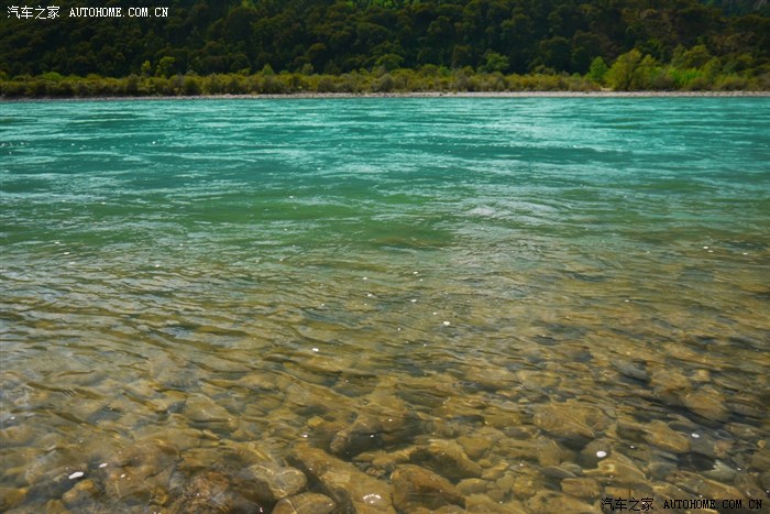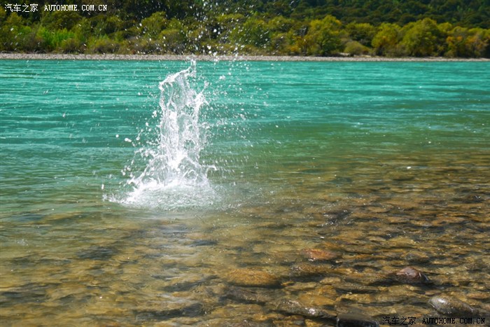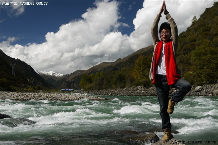 这是在林芝出来的途中,河水很清澈、很蓝。小可的金鸡独立也很标准