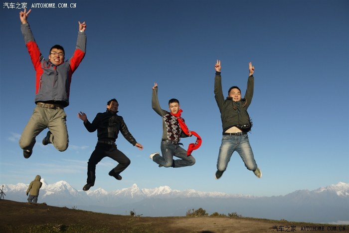 还有一位由于在调相机,没有来得及跳到镜头内。由于我们起得很早,山上风也很大,所以大家都直达哆嗦,可是我们五人冒着大家异样的眼光在山顶这样跳了一个多小时,然后,腰也不痛了,背也不酸了,哆嗦也不打了。强烈简易去山顶的朋友如果冷的话可以这样御寒!