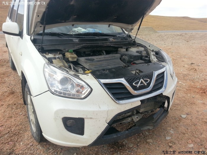 当时撞了羊,我们心里很怕,就开始逃跑,大家手心都在冒汗。大概跑了二十多公里,我们停下车来看看情况,才发现车已经面目全非了,由于水箱和风扇撞坏了,车只能勉强能走,到一个大坡的时候,车上不去了,我们四人下来推车,我们此行没有任何高原反应,但是推了二十米左右确实推不动了,喘气都很累!可惜我们才换了两天的水箱盖又坏了