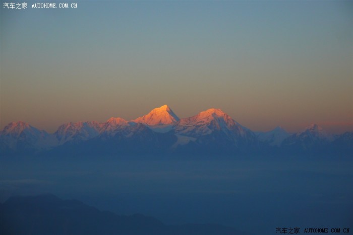 传说中的日照金山,此时山顶东边是太阳渐渐掀起盖头,而西边又是雪山慢慢变红,略而优雅,似乎这件外衣为她量身定做!