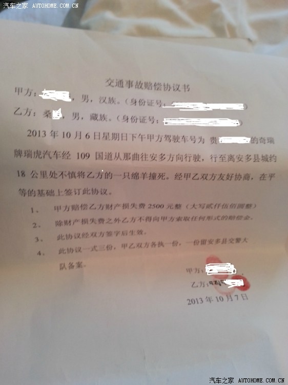 我们此行所开的瑞虎是开始所提到的小艾用他新买的名爵MG6和朋友换来进藏的,就在4号凌晨,瑞虎车主拿MG6给他表弟开,结果在安顺市区撞车了,而且很严重,人没事。车基本上装得面目全非了,把道路的护栏撞坏了,又撞到一辆Q5和别克,连修车、赔钱(包括护栏赔了18000元,交警队真黑!)一共七万多。。而这个MG6也是11月24号才修好!