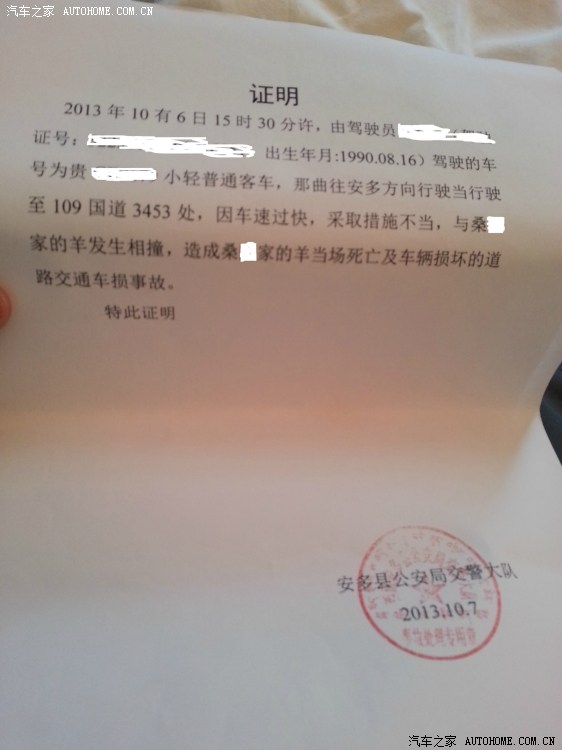 10月6日早上大约10点30分左右,小头(一号驾驶员)正在开车,我坐在后排用手机听歌,突然间车里那音质极差的音响里传来江南STYLE,我就摘下耳机准备听听这首比较动感的歌曲,可就在我摘下耳机的那刻,听见副驾驶的小可大喊“有羊,前面他妈的有羊”随后我们的车就撞上了藏族同胞所饲养的绵羊,而我们非常害怕,加大油门就往前跑,在此,我对我们这种错误的行为表示郑重道歉!(有许多朋友都在问是否当时路况不好,视线不好。答案恰恰相反,当时的路直得看不了尽头,而且是非常好的柏油路。只怪我们的一号驾驶员不知道是开车睡着了还是睡着了!本来就是轻度近视眼的他在当天是阴天的情况下还带着墨镜,后来我们一致谴责他是,装X)