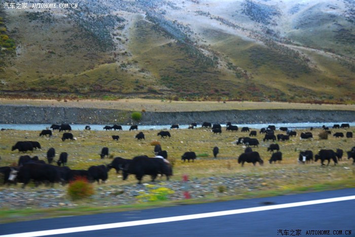 这应该是在理塘出来了。当时有一群牦牛,密密麻麻的。而下面这头应该是牛王吧,就它是白色的,而且又高又大,在前面带路,很是疯狂,摇摇摆摆的。知道的朋友望解释一下。