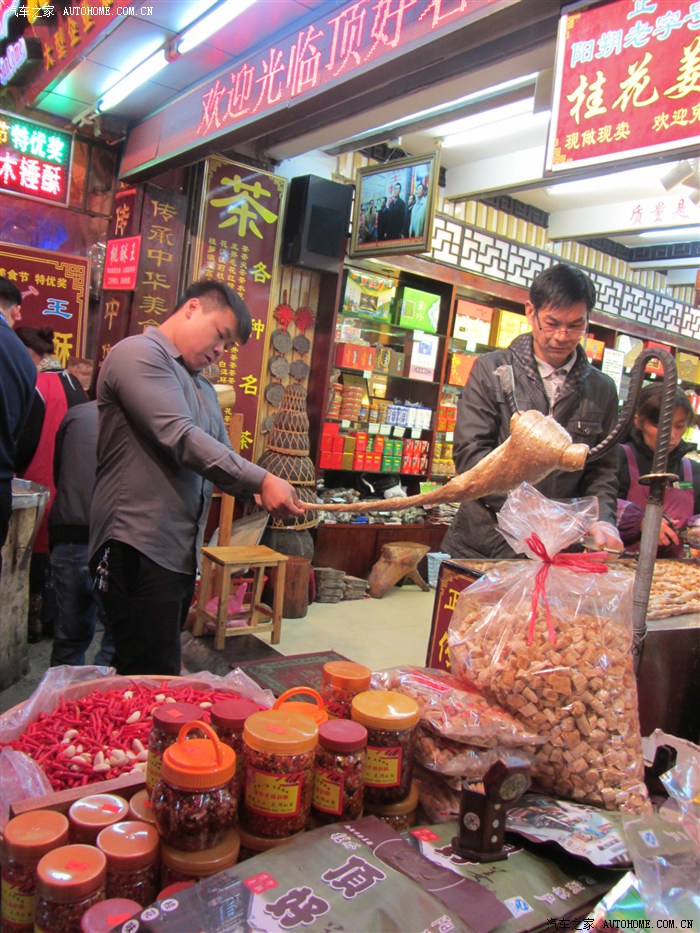 西街。这哥俩抡大锤的促销方式很能吸引眼球。这是“木锤酥”。免费试食。不是很甜腻的糖糖,盛惠18元/纸袋。其实木锤酥在很多景点都看过,包括大山里的围屋。