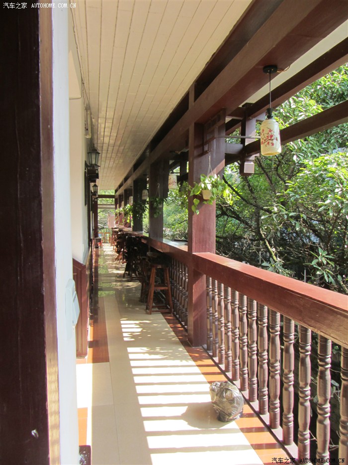 下榻盘丝洞的二楼走廊,在此可以看到石桥流水。