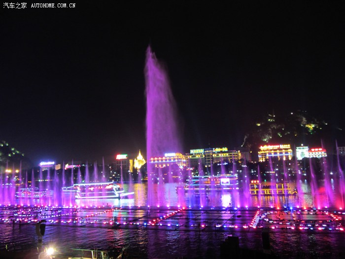 柳江喷泉有别于其它同类是:其与岸上的音乐,江中的邮轮、对岸的射灯形成一个多层次立体交互的整体。给人予复式快感。场面更加恢宏震撼。