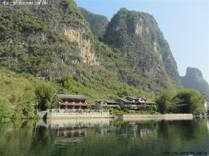周三早上出发,没有按照汽车导航路线,而是先到达广西北流市,再从那儿上高速,这样避免走岑溪市境内崎岖的山路,路更好走。之后就按导航指引,全程高速。(等包茂高速全线完工,则可直接上高速,更便捷。)行至旁晚时分,经过“百里画廊”,高速路上,汽车从拔地而起的山间穿过,感觉山就在眼前,像到了一片异域世界。高速路没停车拍照,只能谈感受,晚上到达阳朔。