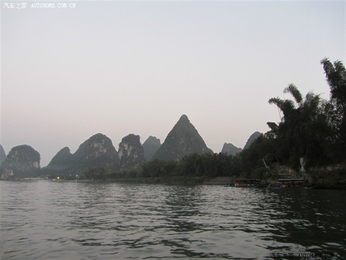 斜阳,烟雾中有点迷离的漓江。