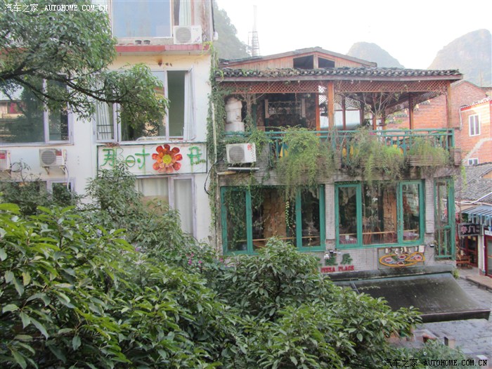 客栈的外观。顺便八挂(唠叨)一下住宿:特色又高端的民宿在城北路的“小清迈”,泰式装修,很有气氛。淡季非节假日家庭房(一大一小两床)两百几,大房300左右。适合有品位的土豪们。更高端的土豪可以考虑香港人开的“河畔度假酒店”,遇龙河漂流可看到河边的中式侗族建筑风格别墅群,房价800块起(网购),阳朔数一数二的高端酒店,为您奉上高端大气上档次的尊贵服务。
