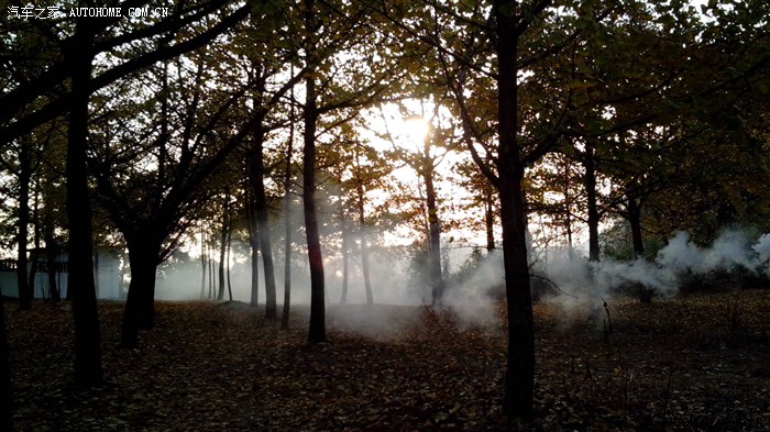 有摄制组在拍骑马镜头来着,人工烟雾。